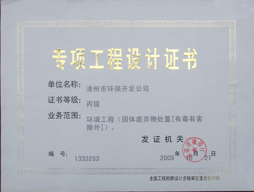 • 專項工程設計證書